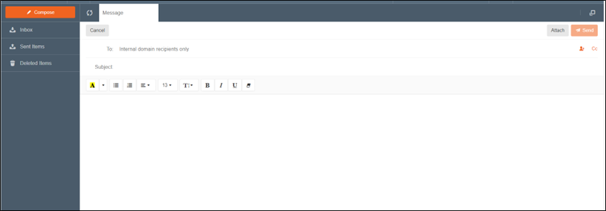 - You will be prompted to create a new message. Here you will define who the recipient is, the subject of the message, and add the senistive information in the body of the secure email.